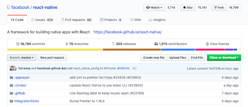 React Native is used by many Fortune 500 companies and startups alike, including, of course, Facebook, but also Instagram, Bloomberg, Pinterest, Skype, Tesla, Uber, Walmart, Wix.com, and many more. React Native’s GitHub repository statistics divulge that close to 2,000 contributors have committed 16,000 times in 72 branches with over 300 releases.