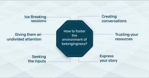 Including people in meetings and genuinely valuing their opinion and feedback is an essential way to create the sense of belongingness. Additionally, listening to their ideas is important too. Employees play a critical role in fostering an inclusive environment. If the company rolls out an employee survey each year, it could be a good point to include the question: “As a team, what can we do to improve our sense of belonging and inclusion at work?” With questions like this would help in deep dive to understand the employee’s outlook towards the organisation and enable to pinpoint the opportunities and scope for improvement.