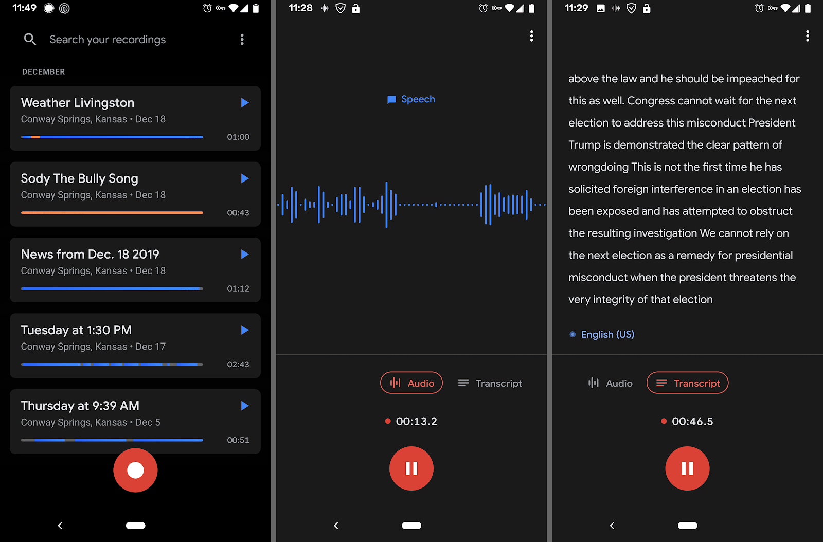 The feature that will outshine all other voice recording apps is the transcribing functionality of the Google voice recorder. The real-time transcribed text is searchable and helps the user to swiftly search a particular work in the entire interaction without the need to hear the entire conversation.
