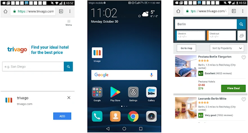 Trivago is a competent, multilingual search engine for Hotel searches. Trivago’s descriptive information on different hotels including pictures, reviews, and ratings helps the end-user find the best fit for their plans. In recent years Trivago witnessed a surge in their mobile users which made the brand realize that a good mobile experience is definitely a big thing for the client. But the problem germinated when it had to make a choice. It was unsure if people would bear the cost and download the app. They were also aware that not all customers enjoy good network connectivity always so they wanted to think beyond a native app.